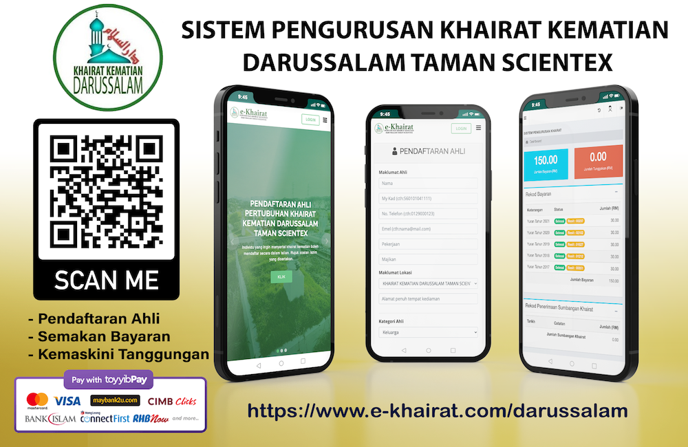 Anda boleh klik pautan pendaftaran ahli dan mengisi maklumat anda. Anda perlu menunggu kelulusan dari pentadbir khairat terlebih dahulu sebelum yuran pendaftaran dan yuran tahunan dijelaskan.